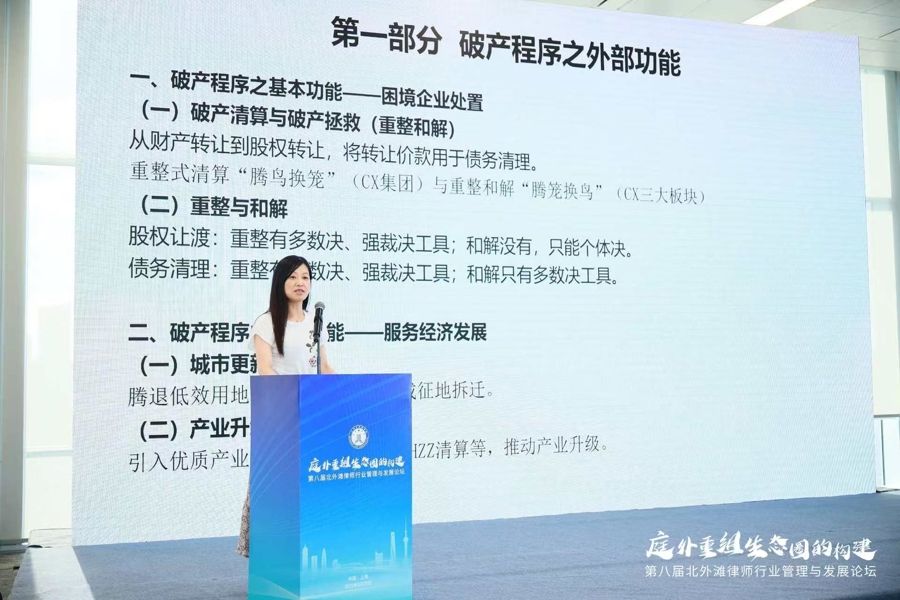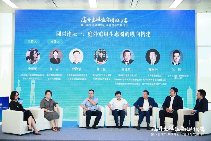 在此背景下,9月25日,第八届北外滩律师行业管理与发展论坛在上海北外滩金茂中心举行。本届论坛以“庭外重组生态圈的构建”为主题,汇聚来自最高人民法院、地方法院、政府相关部门、高校、重组服务中心、律师事务所及企业界的百余名专家,共同探讨庭外重组的机制创新与生态协同。